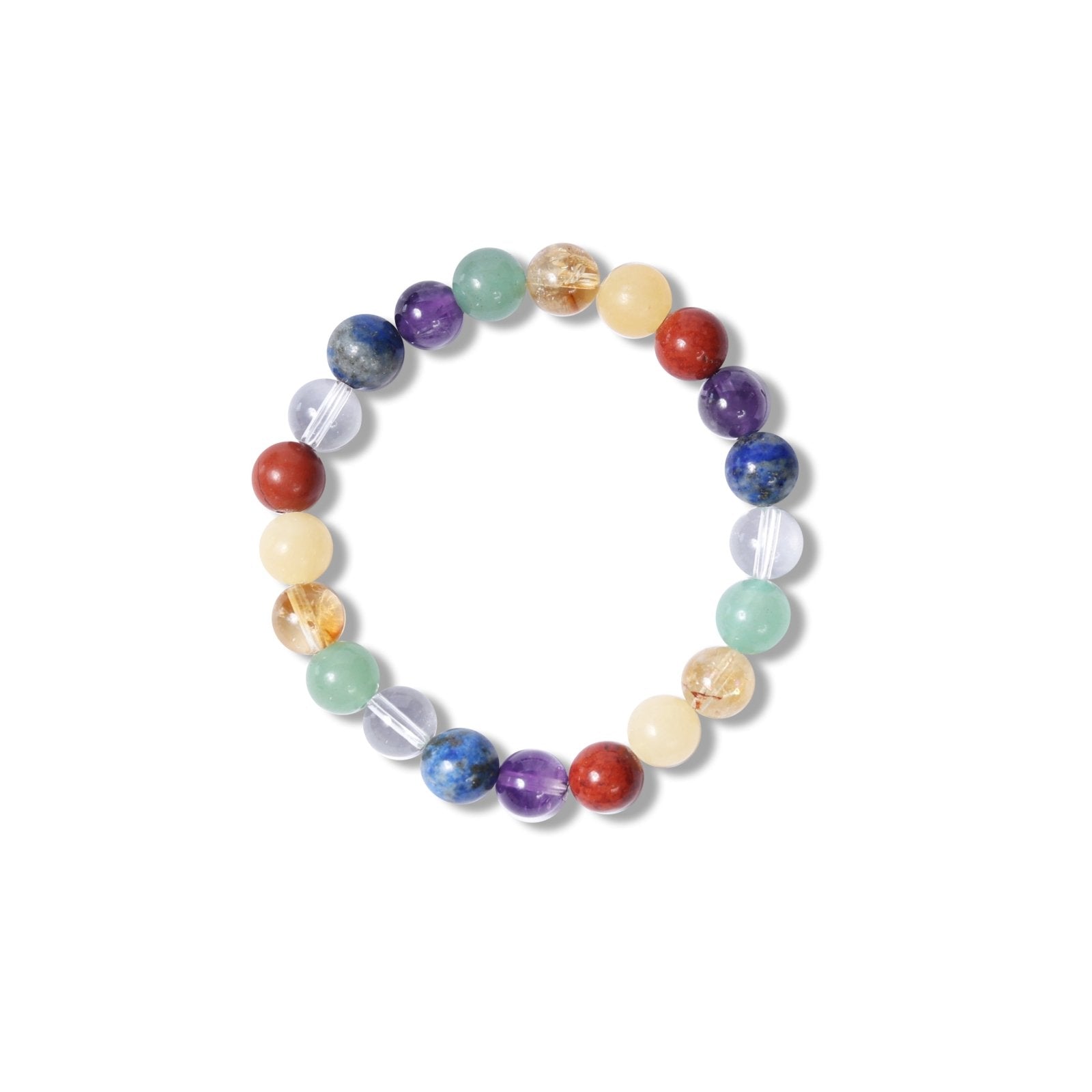1. This 7 Chakra bracelet embodies seven distinct stones like amethyst, Clear Quartz, Lapis lazuli, Green Aventurine, Yellow Calcite, Citrine, Red Carnelian, and Red Jasper.