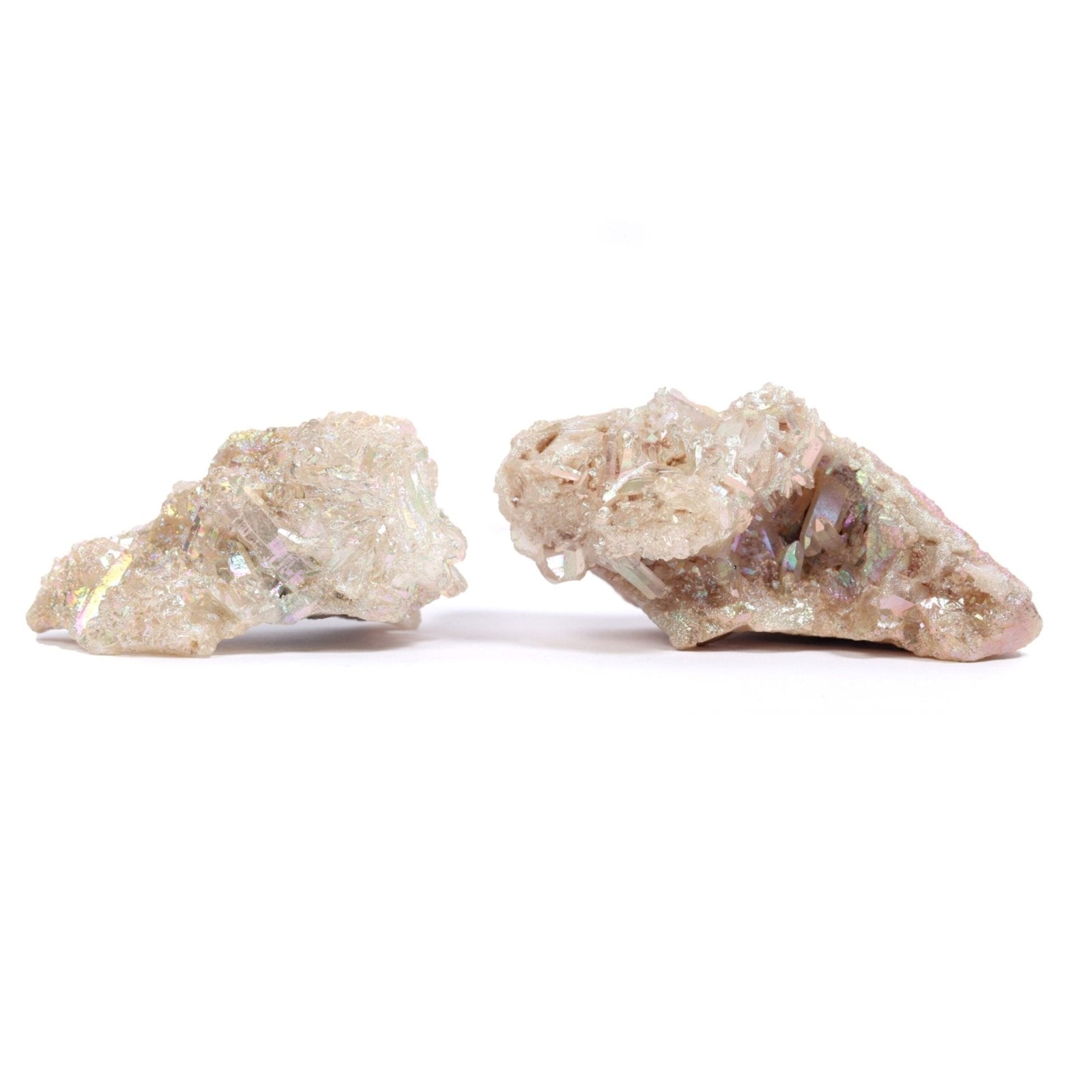 1. Angel Aura Quartz is a crystal with a rainbow iridescence.