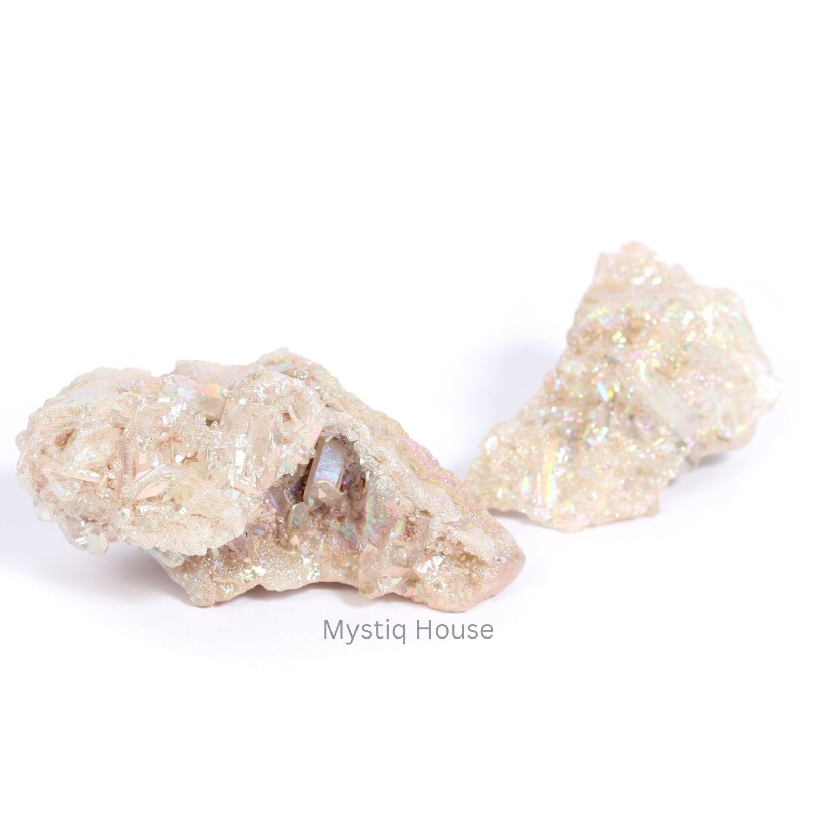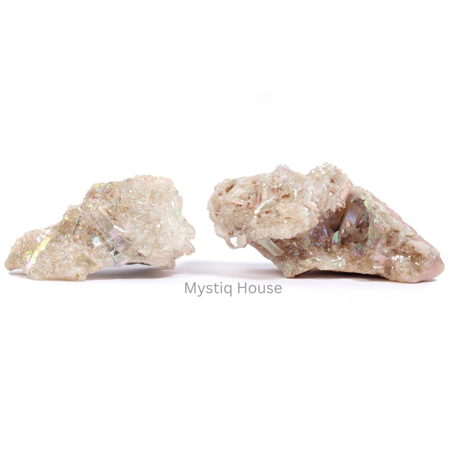 9.Experience celestial energy with this iridescent Angel Aura Quartz Cluster, shimmering with ethereal rainbow light to elevate your spiritual practice. This high-vibration stone cleanses auras and enhances divine connection. A breathtaking centerpiece for crystal grids or sacred spaces that inspires wonder.