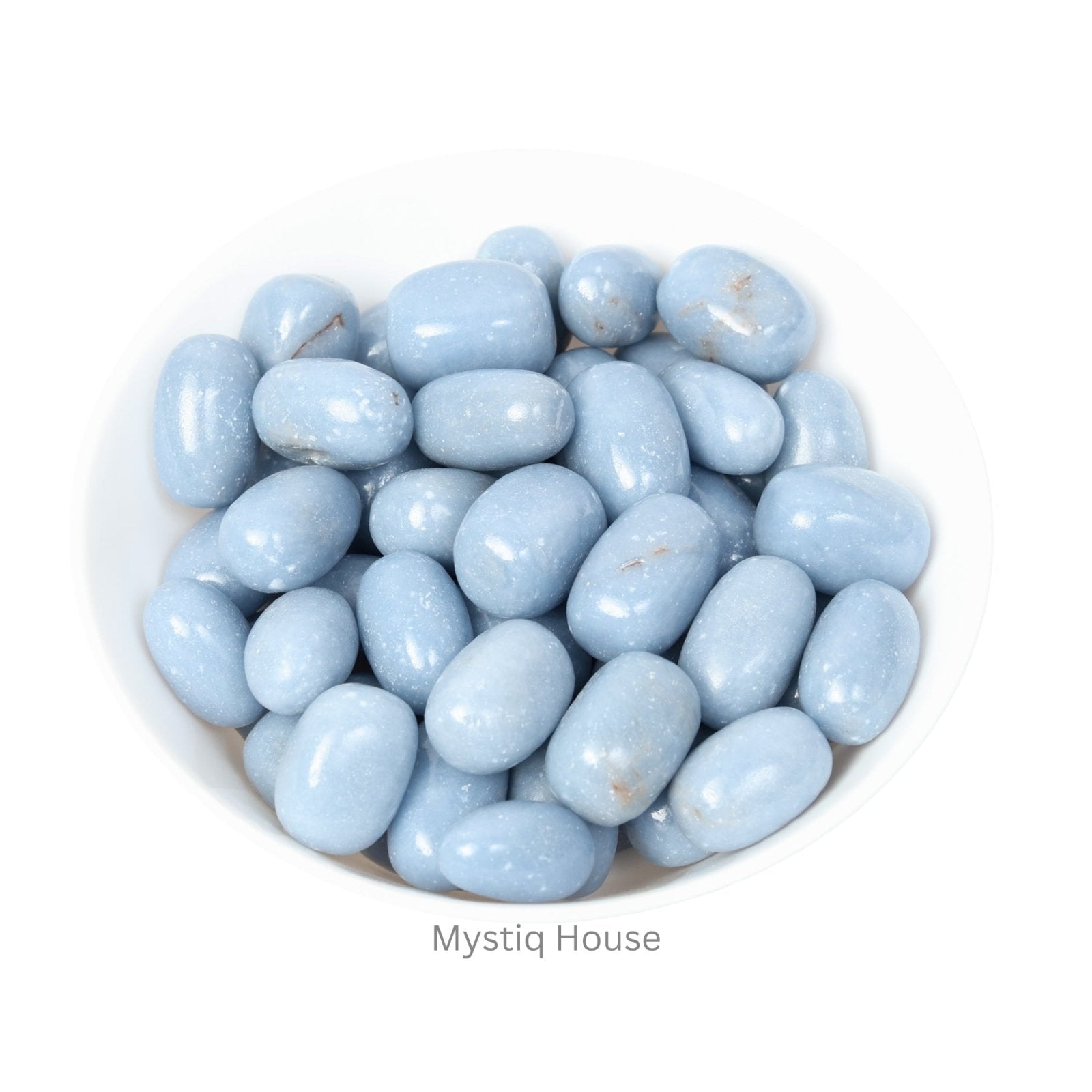1.For healers, Angelite proves invaluable, amplifying attunement and perception during healing sessions. Tumble stones are used for their healing properties. You can place them in meditation spaces, hold and meditate with them, or use them to create a crystal grid.