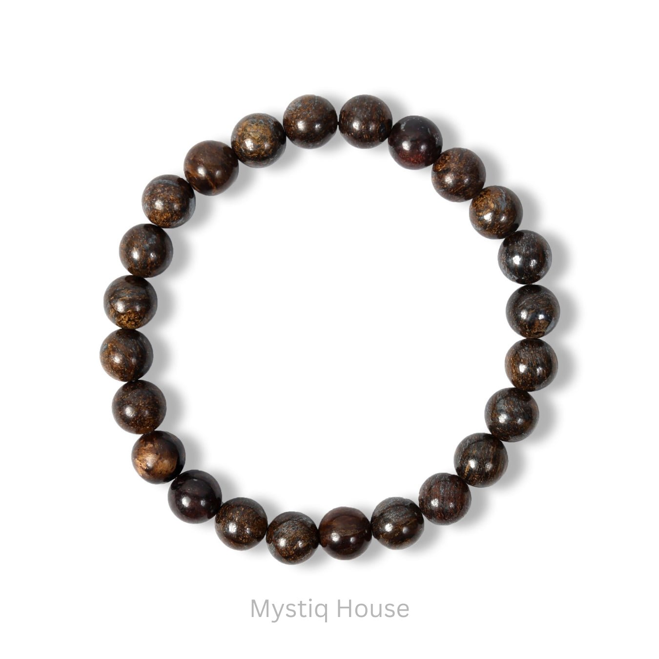 A bronzite bracelet, renowned for its protective qualities, grounding energy, and ability to instill confidence and harmony in the wearer.