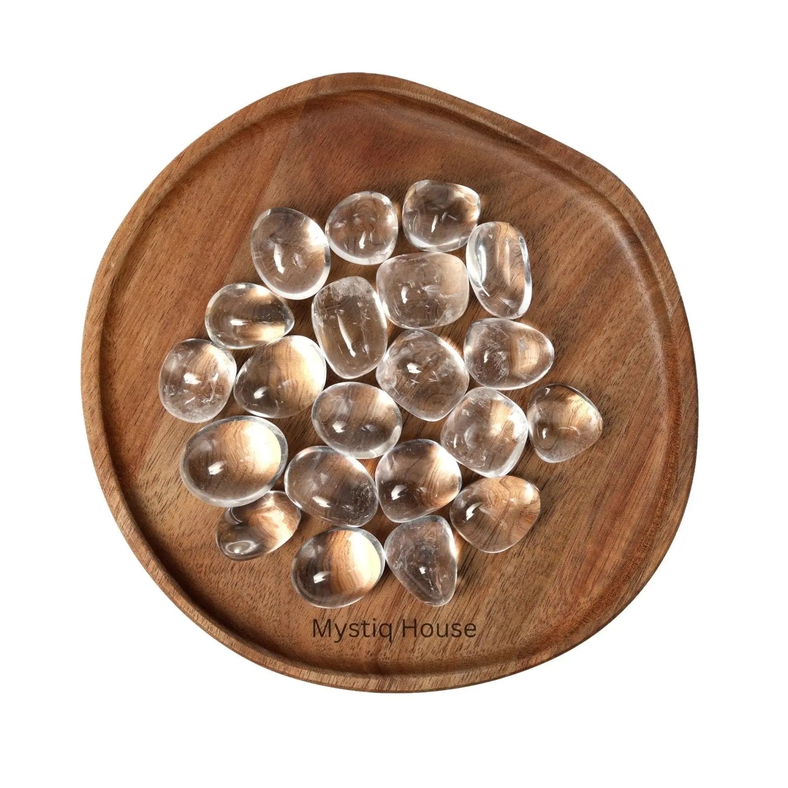 7.Buy our Clear Quartz Tumble Stone at the best price online from Mystiq House—a natural gemstone healing crystal best for reiki and vastu practices. With its transparent or slightly opaque appearance and crystal-clear surface that beautifully reflects light, this versatile stone radiates pure, pristine energy, making it perfect for meditation, chakra healing, or carrying for an energy boost.