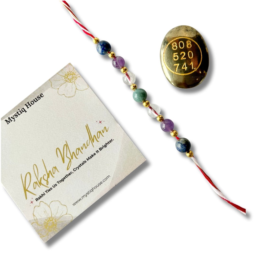 3.Support your brother’s health and energy with the Combination of Immunity Rakhi & Pyrite Money Switch Cabochon from Mystiq House. Designed to heal, balance and attract. A thoughtful Rakhi that carries healing intentions and positive vibes. Buy online now for a meaningful and spiritual celebration.