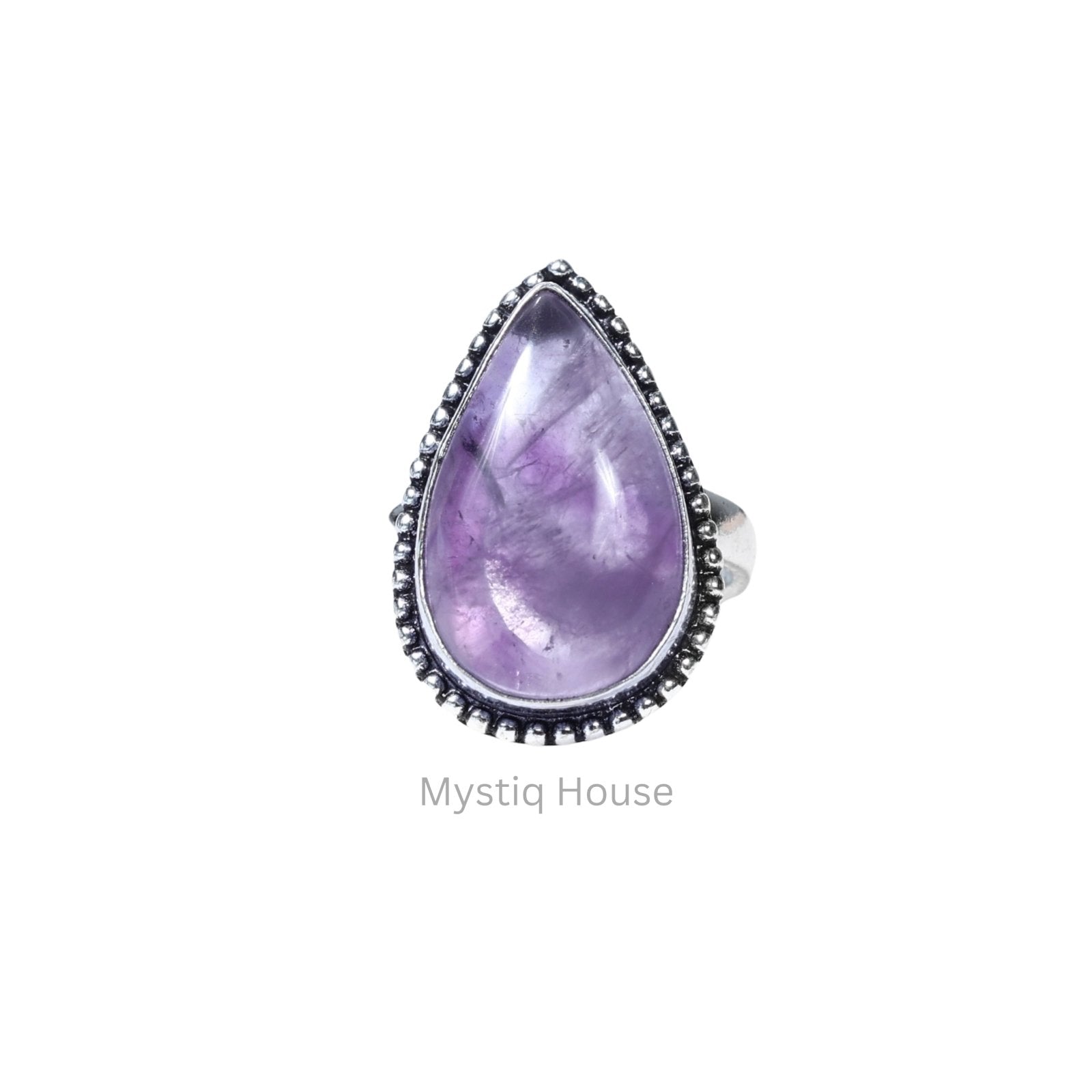 Amethyst Drop Brass Bordered Ring - MystiqHouse