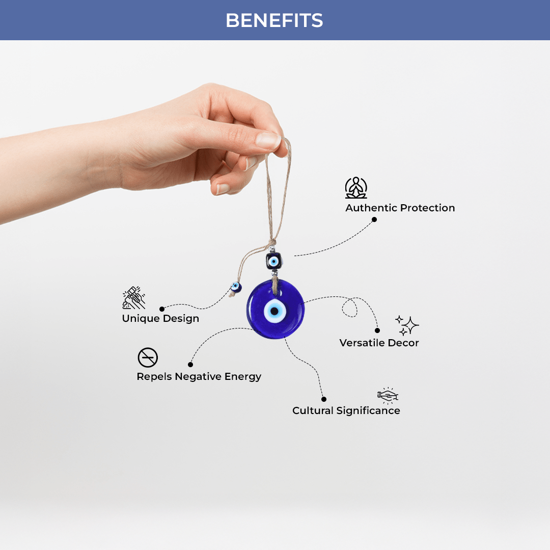 1. Protection from Negative Energy: The evil eye symbol is believed to deflect jealousy, ill intentions, and envious glances. Hanging it near your entrance or workspace helps create a protective barrier, keeping negativity at bay.
