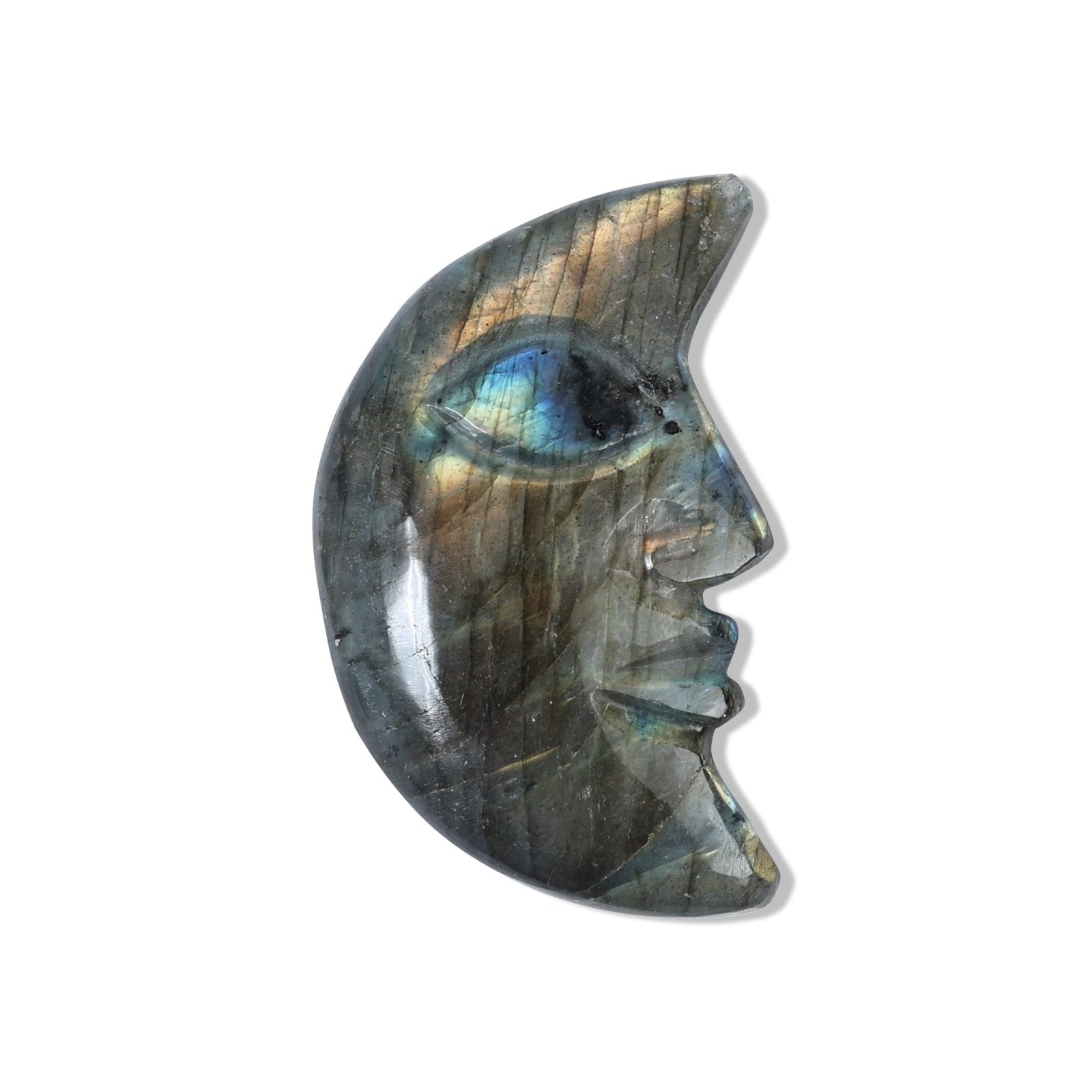 1. Awakens Intuition & Inner Wisdom Labradorite is known as the stone of magic and transformation. The moon face carving enhances its ability to awaken psychic abilities, intuition, and spiritual insight—ideal for healers, readers, and meditators.