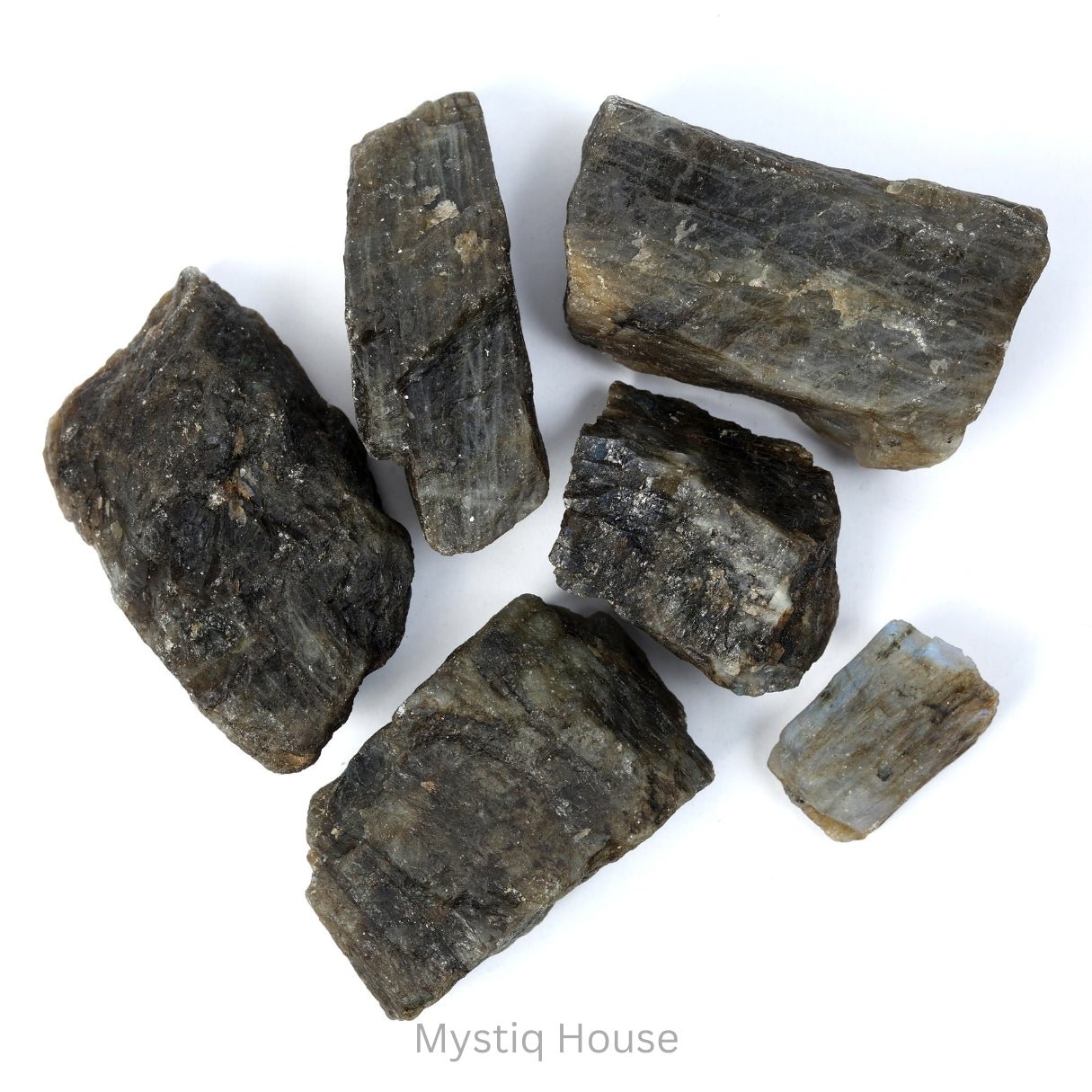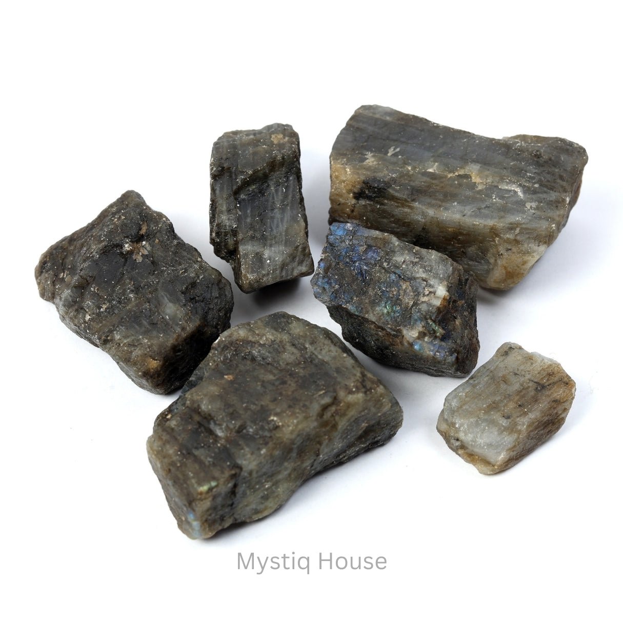 4.Buy the original Labradorite Raw Crystal Stone online at the best price from Mystiq House. This rough stone displays mesmerizing iridescent hues, making it a powerful tool for intuition and psychic protection. Known for its transformative energy, it aids in self-discovery and spiritual growth. As a natural crystal, each piece is unique in shape and form. Perfect for healing, Reiki, and Feng Shui practices.