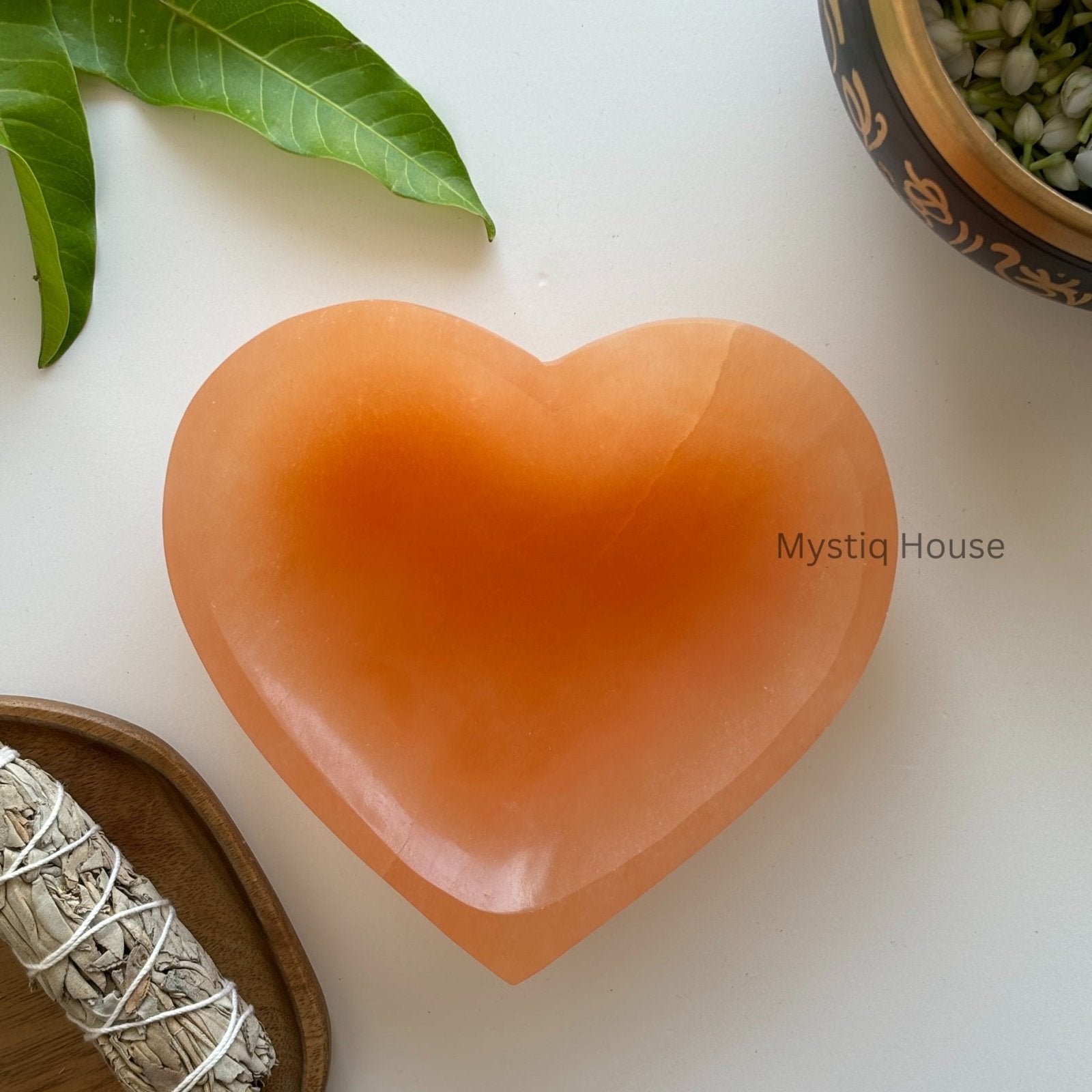 Orange Selenite Heart Charging Bowl - MystiqHouse