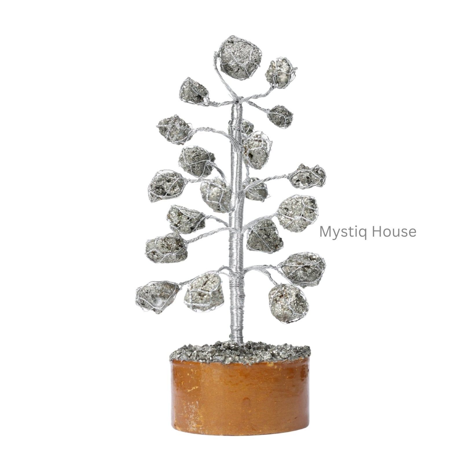 Pyrite tree is associated with wealth, attracting abundance, prosperity, good luck in business, and new opportunities.