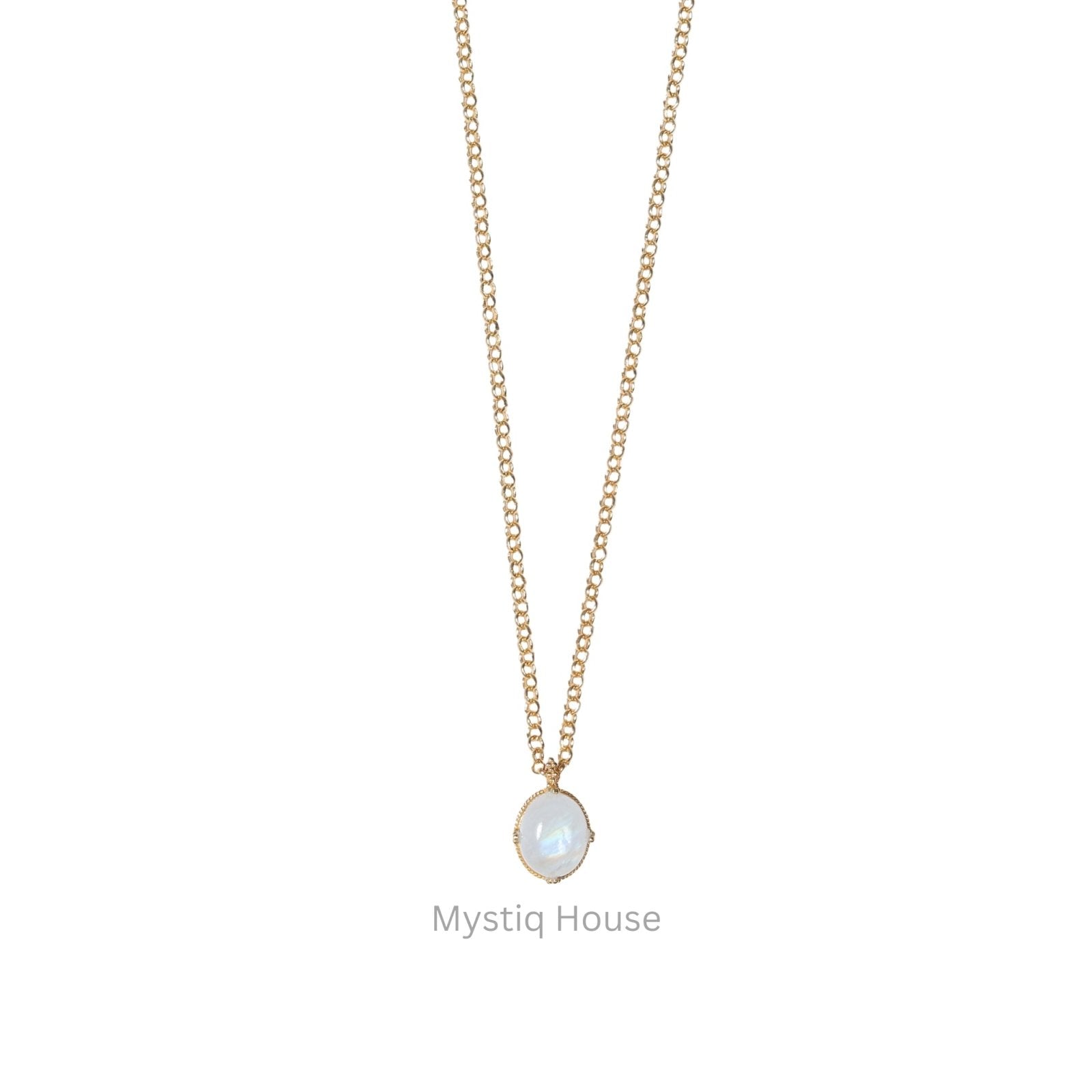 3. Each necklace is unique due to the natural variations in rainbow moonstone.