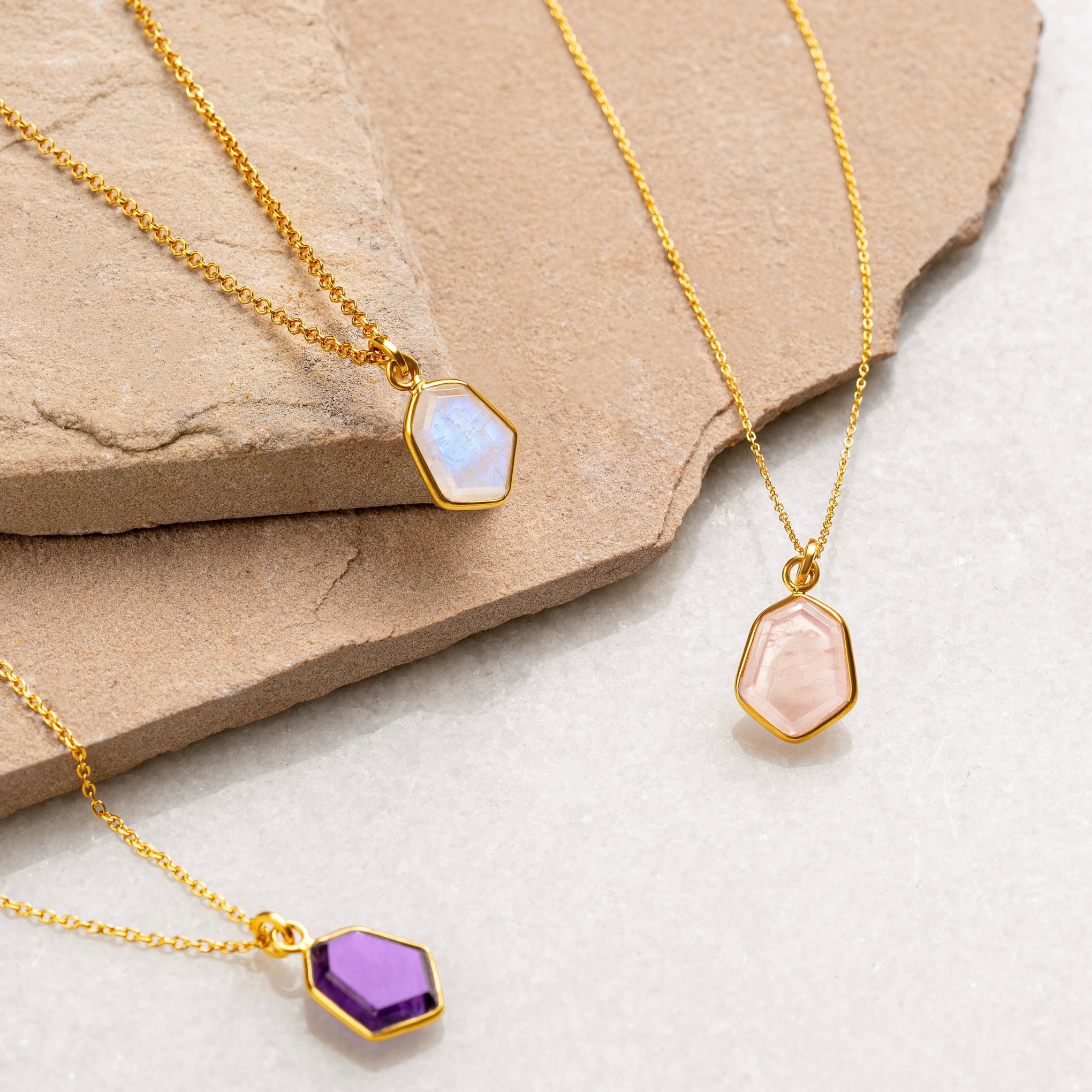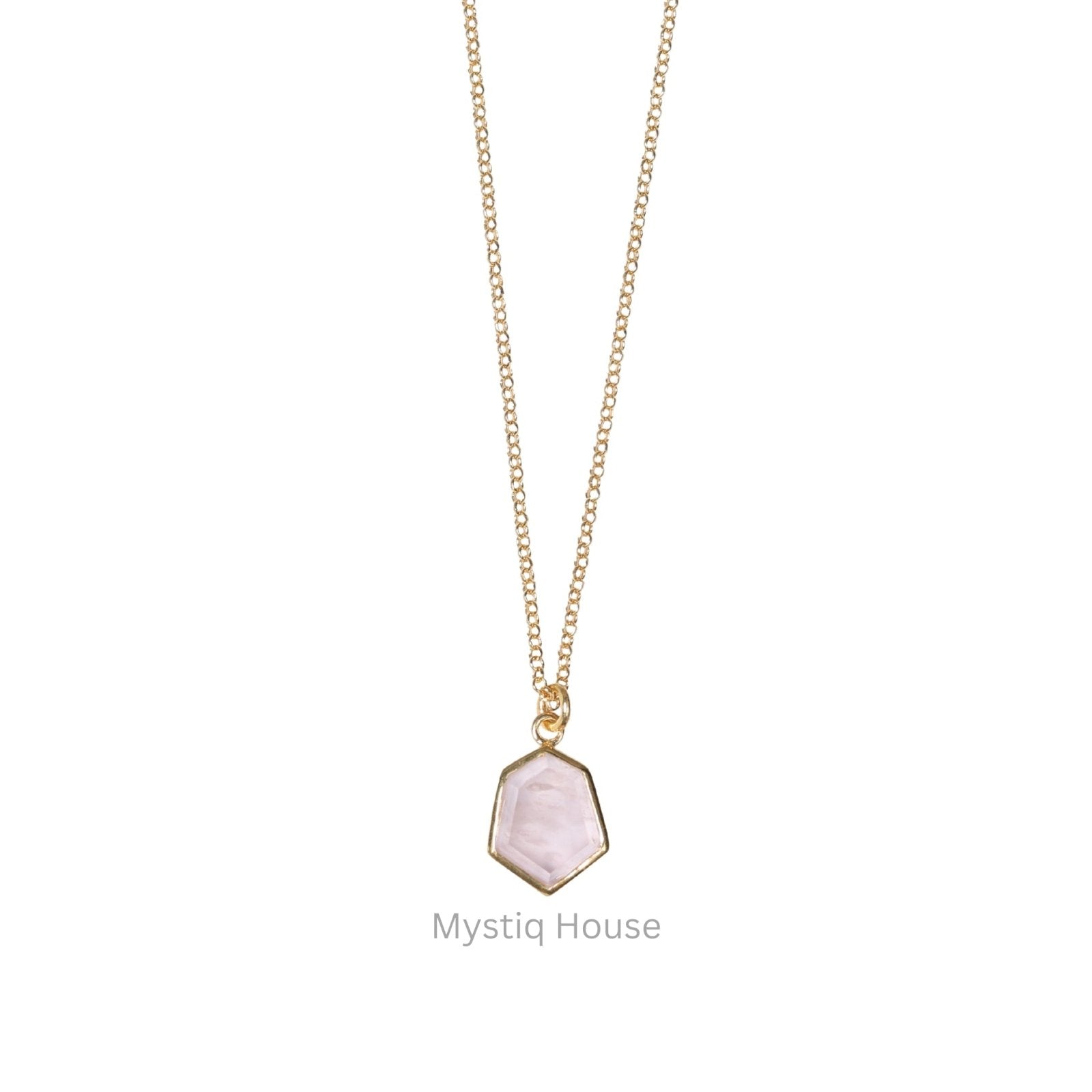 Rose Quartz 92.5 Silver Hexagonal Necklace - MystiqHouse