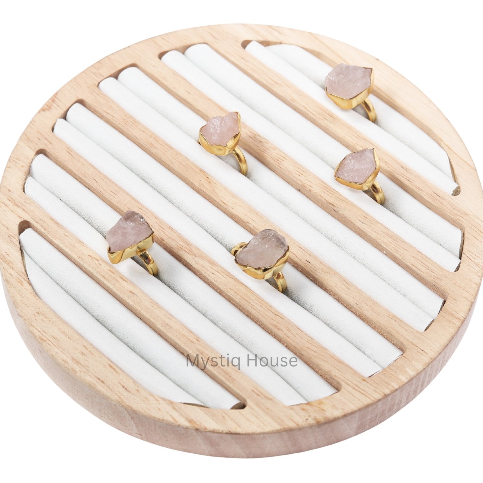 4.Buy online our Rose Quartz Raw Adjustable Ring from Mystiq House—a healing crystal, natural stone jewelry piece crafted in elegant sterling alloy. Featuring a smooth, polished oval rose quartz gemstone with a soft pink hue that exudes love and compassion, this adjustable ring is designed for a perfect fit.  Buy online at the best price.