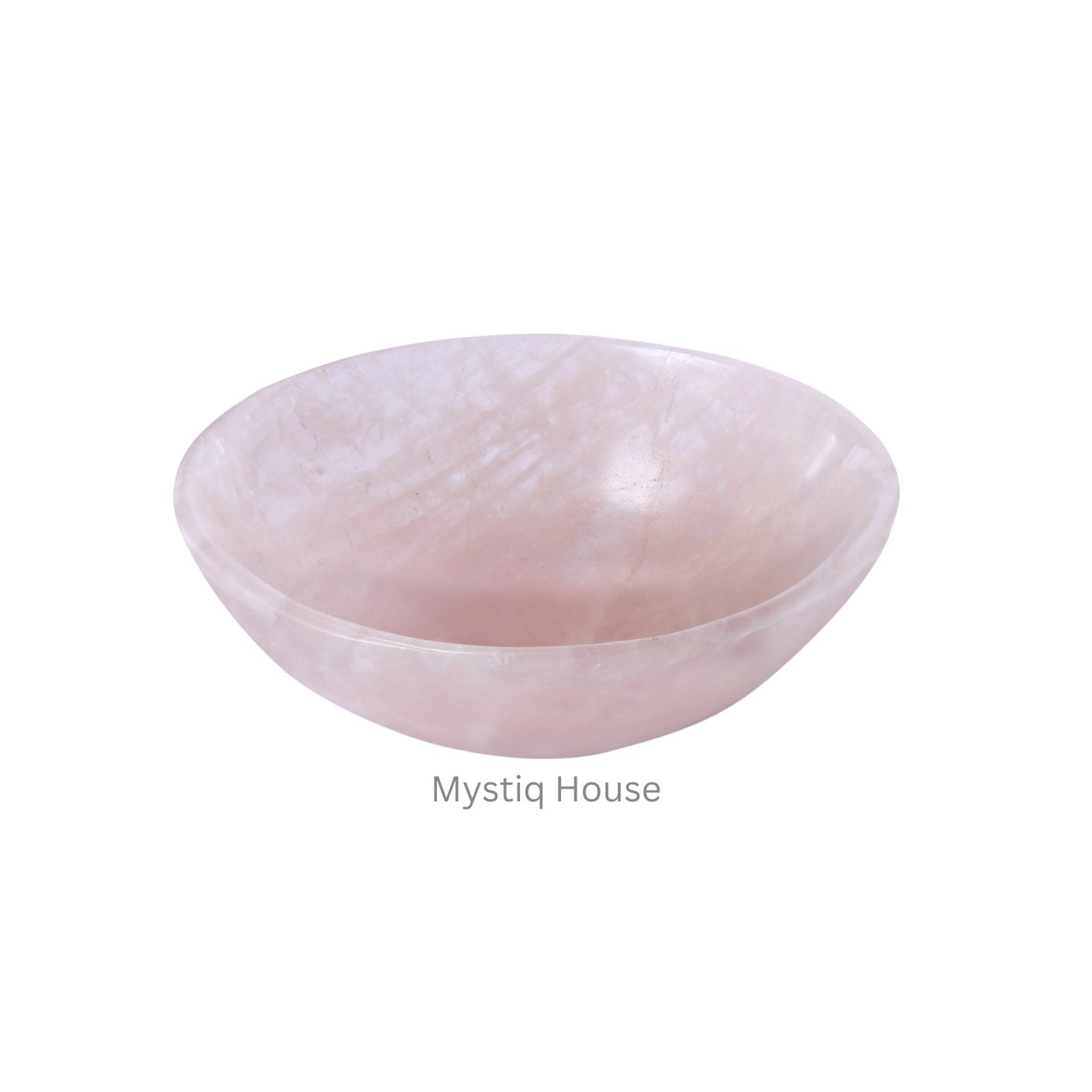 3. Each bowl is unique due to the natural variations in the rose quartz crystal.