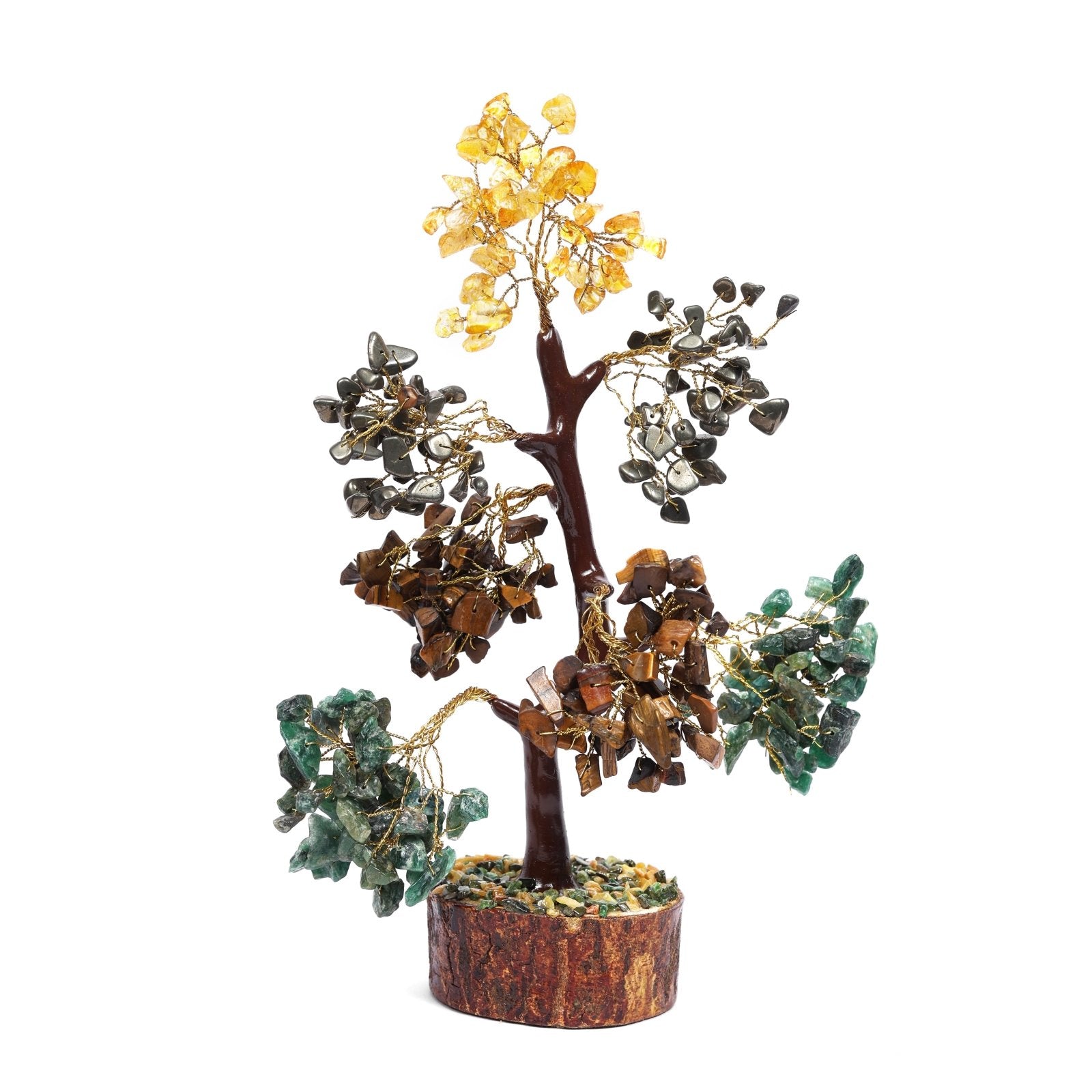 1.Wealth tree is made from a combination of Citrine, Green Jade, Pyrite & Tiger eye chips.
