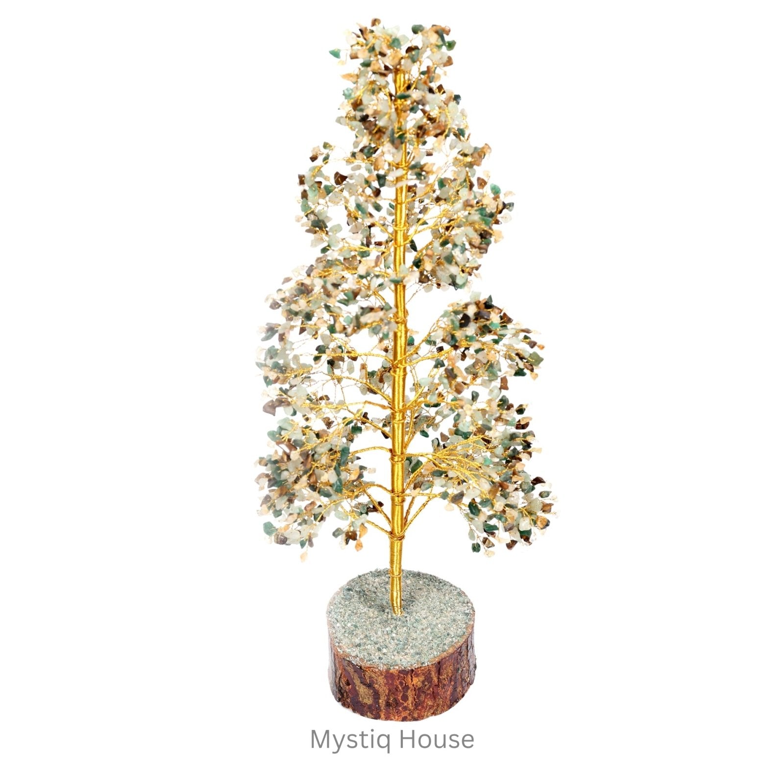 1. The Wealth Tree, embellished with a combination of Ctrine, Green Aventurine, Green Jade & Tiger eye chip crystals, signifies prosperity and good fortune